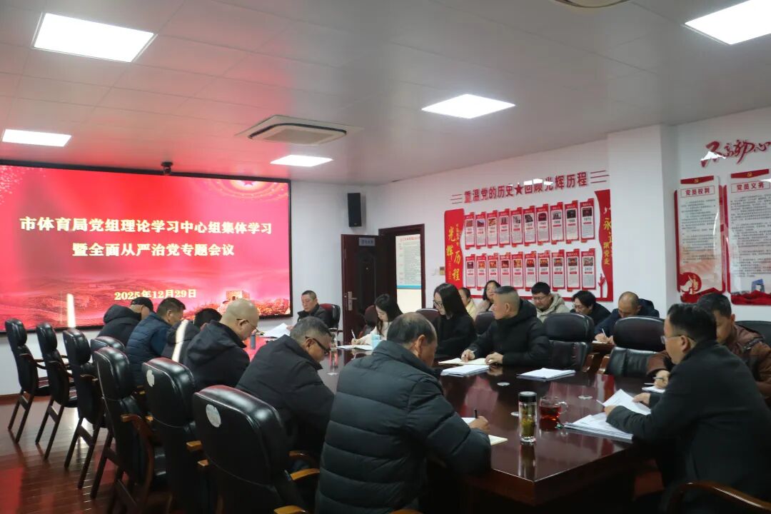 12月29日上午,市体育局召开党组理论学习中心组集体学习暨全面从严治党专题会议,深入学习贯彻习近平总书记关于全面从严治党、全面依法治国的重要指示精神。市体育局党组书记、局长袁勇主持会议并讲话。